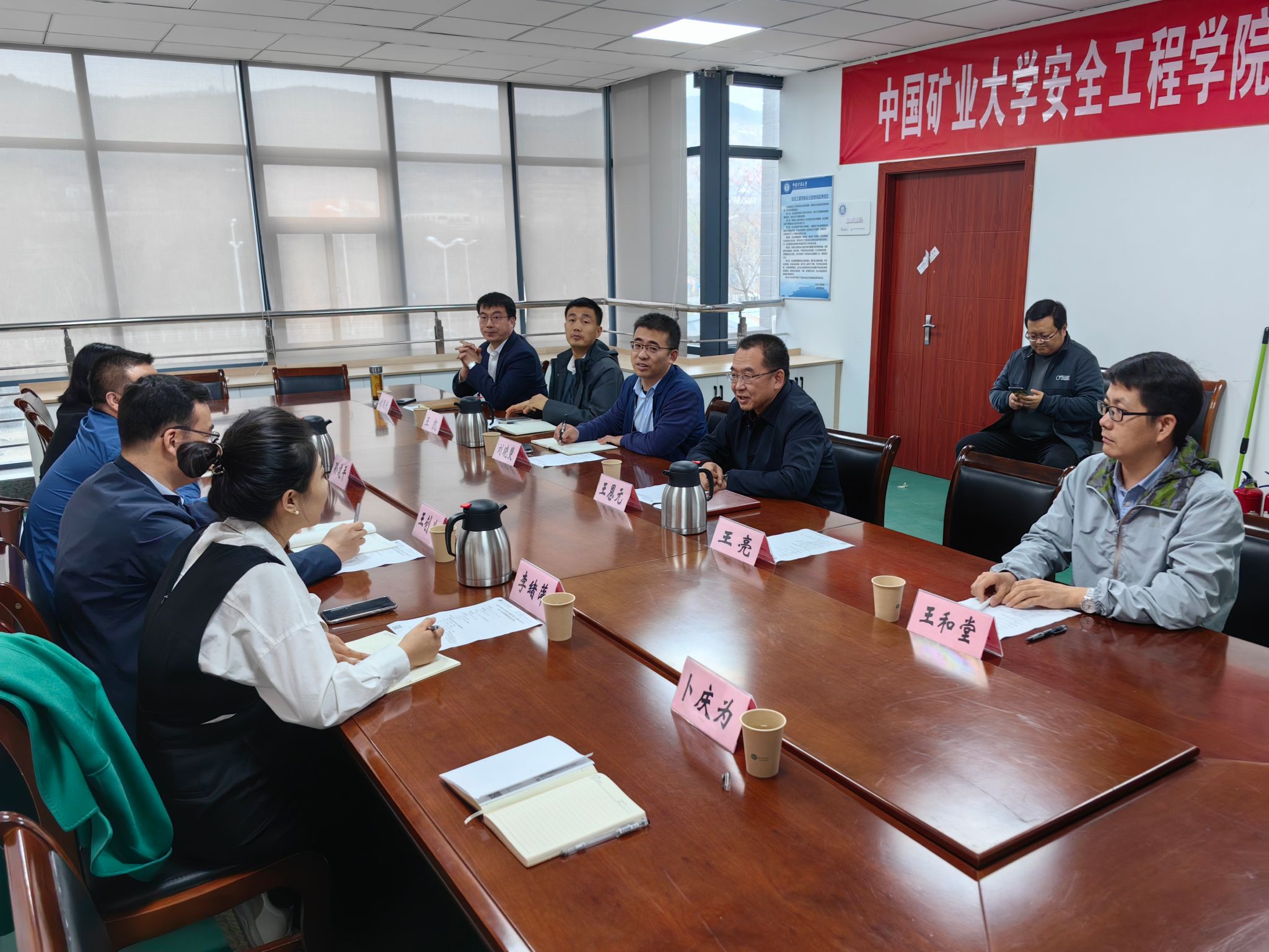 下午,副院长王创业、孙建平一行与中国矿业大学与安全工程学院书记王恩元,副院长王亮、刘晓斐,通风防灭火与地下空间安全研究所所长王和堂、研究生与科学研究中心主任王凯、本科教学中心主任时国庆进行关于安全工程学科与专业建设交流。