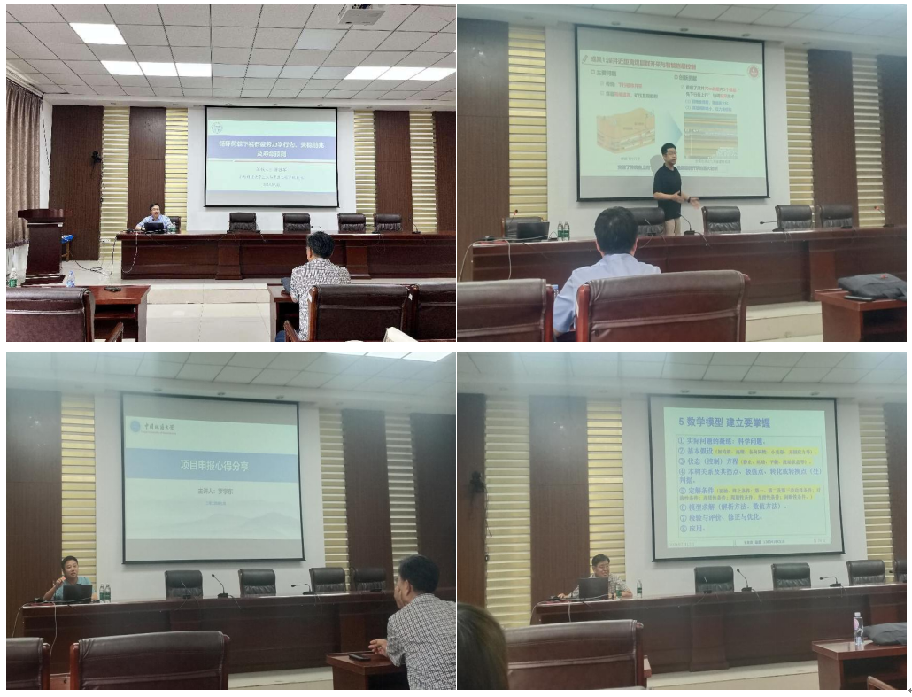 北京科技大学土木与资源工程学院院长苗胜军教授作题为《循环荷载下岩石疲劳力学行为、失稳前兆及寿命预测》的报告,分享了循环荷载下岩石疲劳力学的行为特征,并探讨了疲劳变形破坏前兆特征及预测方法;中国矿业大学(北京)资源科学与工程系系主任李杨教授以《煤层群/破坏区/厚煤层开采与岩层控制》为题分享了厚煤层开采与岩层控制的研究和最新进展;中国地质大学(武汉)罗学东教授就《项目申报心得分享》深入浅出地剖析了项目申报的心得体会;辽宁工程技术大学二级教授王来贵以《国家自然科学基金项目选题》为题,分享了国家自然科学基金项目如何选题的宝贵经验。