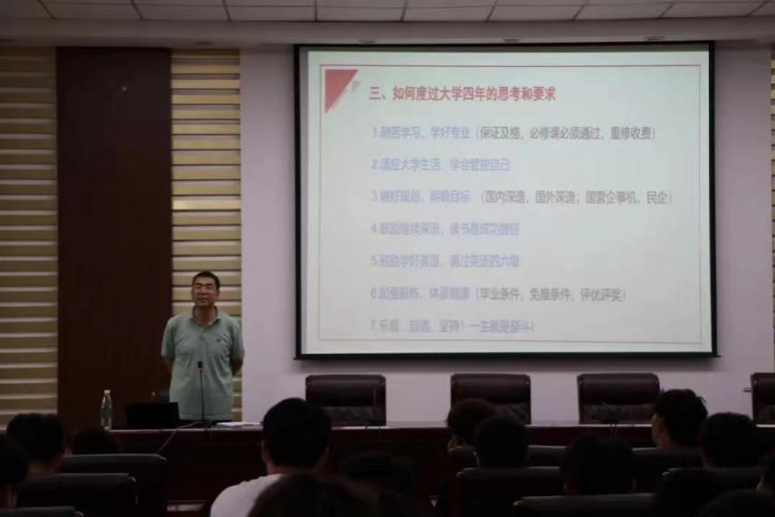 9月8日下午学院院长张光存为同学们进行了一场深刻而精彩的讲座。同时也向各位大一新生介绍了金年会的人才培养模式与金年会特色专业与特色优势。他勉励同学们要树立远大理想,厚植爱国情怀,练就过硬本领,不断彰显青春风采,贡献青春力量。