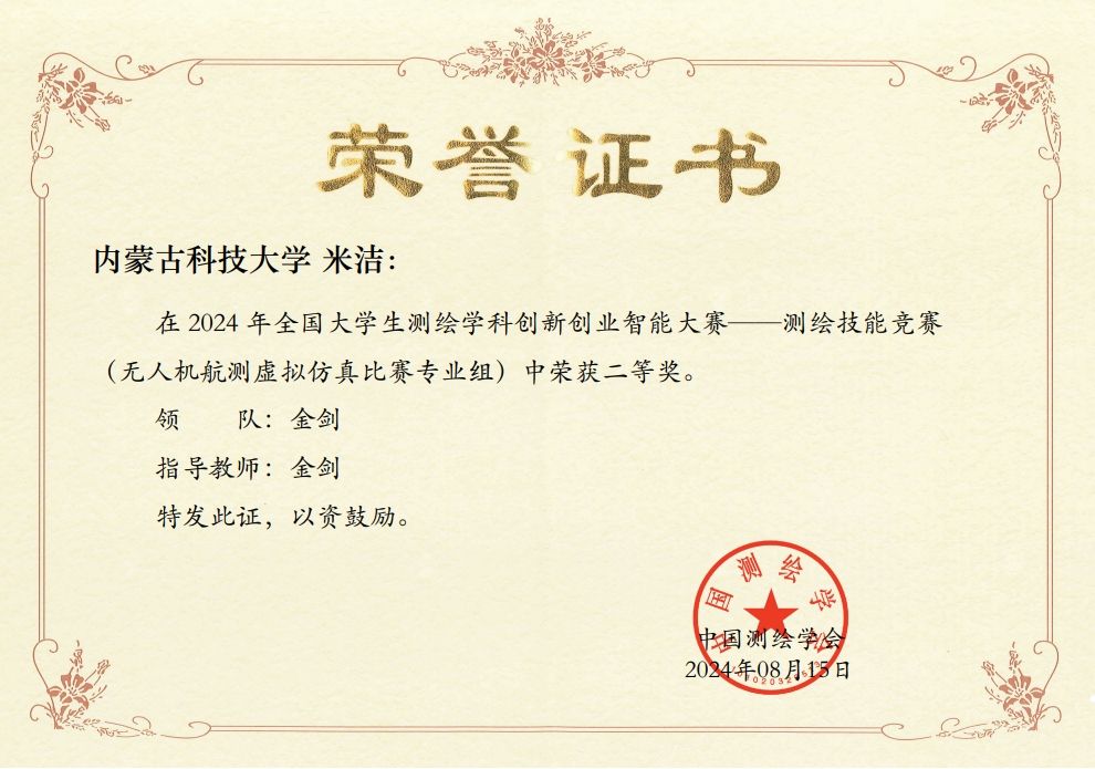 金年会测绘工程系学子经过积极选拔与备战,参与了大赛各个项目的激烈角逐。最终,在金剑老师的指导下,金年会优秀学子米洁从来自全国360所高校的近8000名学生中脱颖而出,获得无人机航测虚拟仿真比赛的全国二等奖。