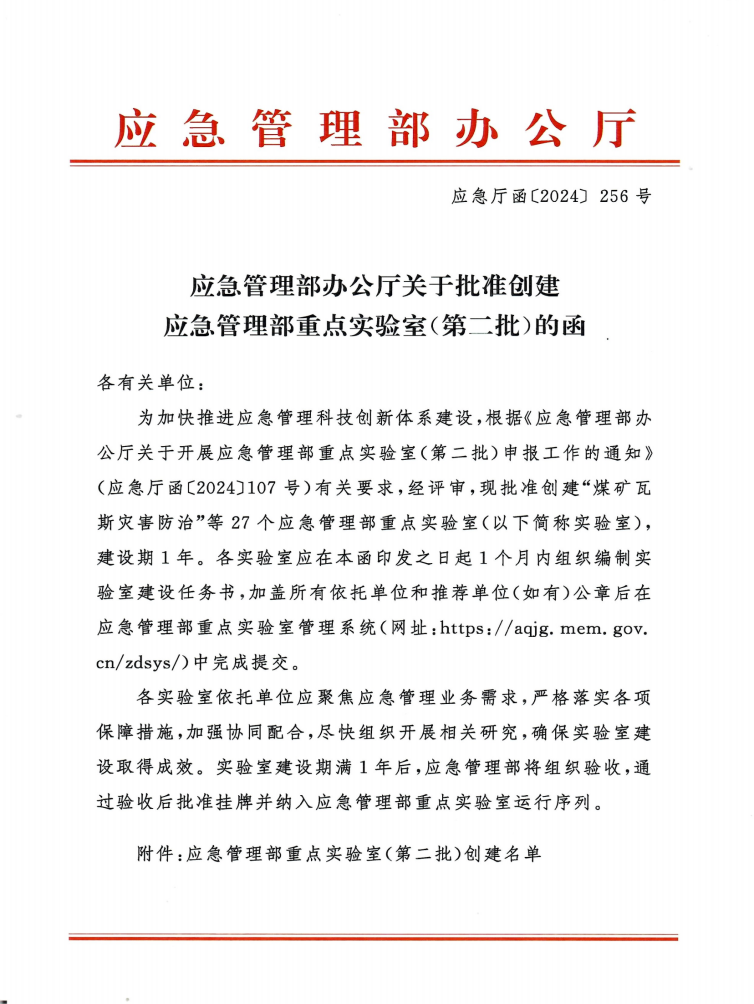 近日,应急管理部发文(应急函〔2024〕256号),批准创建27个应急管理部重点实验室。jinnian金年会作为依托参与单位获批“工贸行业安全风险防控联合创新应急管理部重点实验室”。我校将在本重点实验室建设中发挥工贸行业安全风险防控领域科研、学科、人才优势,推动安全应急领域产学研合作与产业链紧密结合的创新发展,为自治区安全与应急产业的可持续发展提供强有力的支撑。
