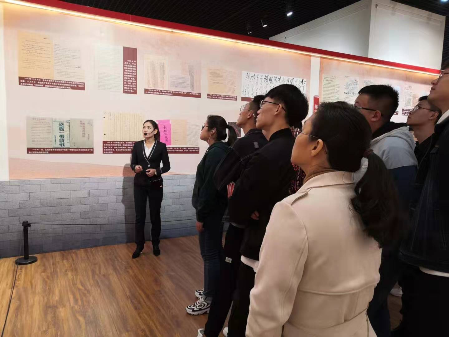 在讲解员的解说和带领下参观了文献展,文献展以丰富的珍贵文献档案为基础,从理论探索、理想信念、不懈奋斗、自身建设、牢记宗旨五个角度,展现了中国共产党近百年来团结带领全国人民坚守初心,不忘使命,不断开拓前行的光辉历程。