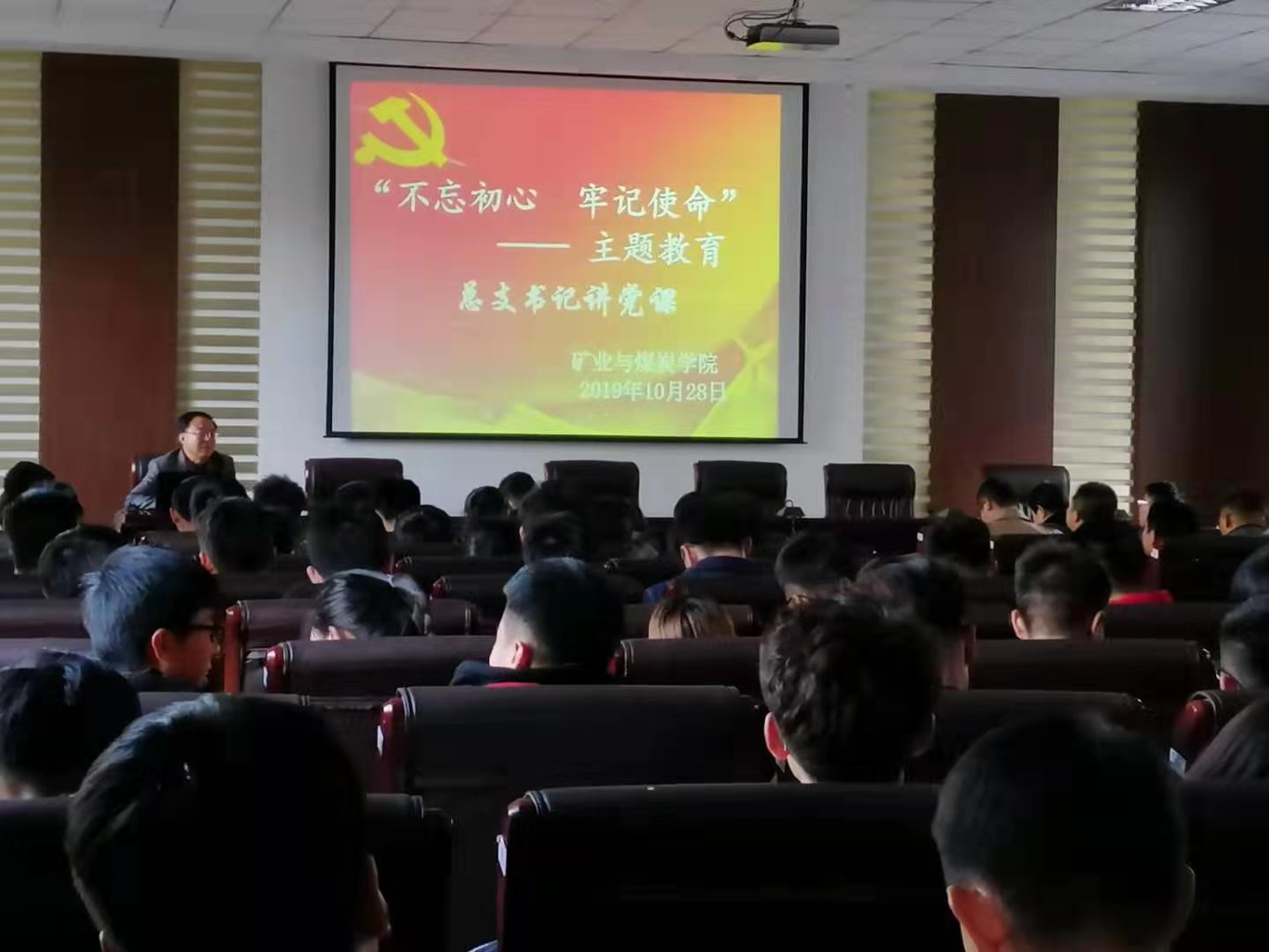 2019年10月28日下午,jinnianhui金年会诚信至上党总支书记王建国为学院全体教师和学生党员在实验实训楼二楼会议室进行“不忘初心、牢记使命”主题教育总支书记讲党课。党课以“守教育报国初心,担立德树人使命,做三全育人最坚定的传播者、践行者”为主题,围绕以下内容展开讲解: