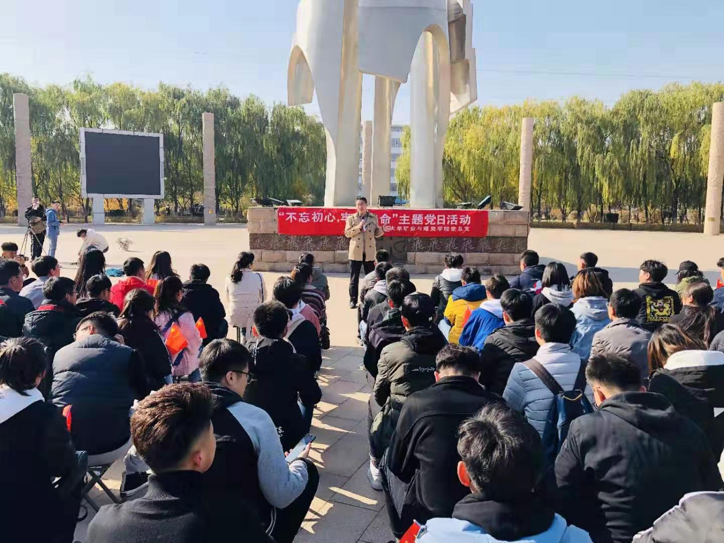 2019年10月26日上午,jinnianhui金年会诚信至上组织全体学生党员到北方兵器城开展庆祝中华人民共和国成立70周年“不忘初心、牢记使命”主题党日活动,学院党总支组织委员、学生党支部书记胡显峰老师为学生进行主题党日教育现场讲党课。党课主要围绕以下内容展开讲解: