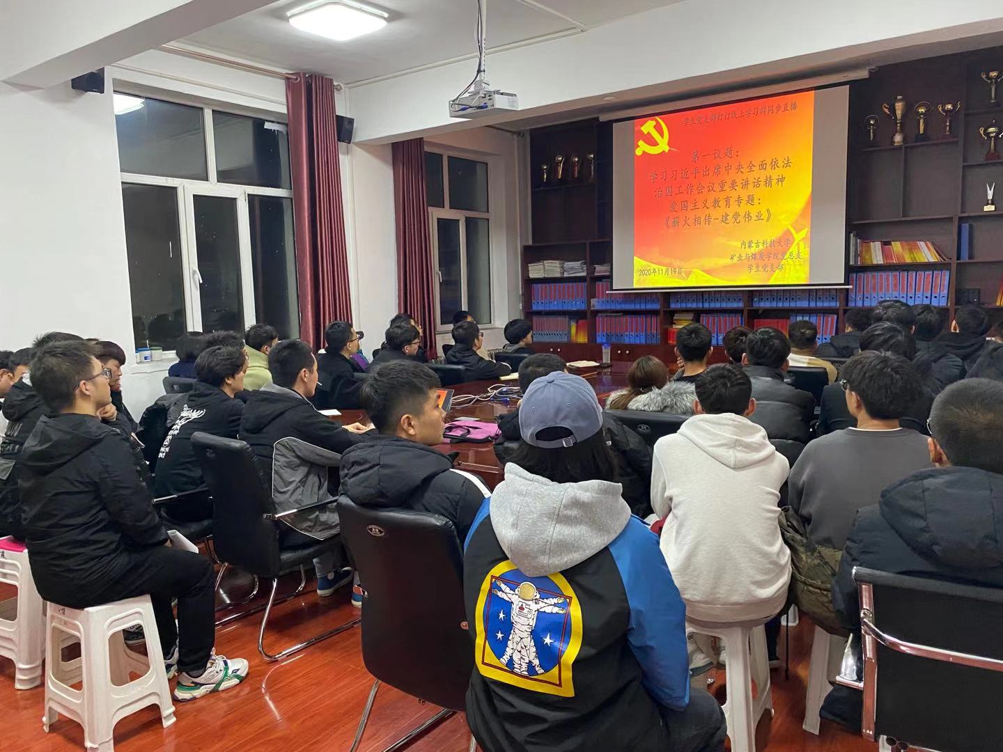 为大力弘扬爱国主义精神,jinnianhui金年会诚信至上党总支于2020年11月19日晚上19:30,在临曦楼二楼党员之家线上线下同步开展专题理论学习活动。本次学习内容是:第一议题:学习习近平出席中央全面依法治国工作会议重要讲话精神;爱国主义教育专题:观看《薪火相传-建党伟业》视频。