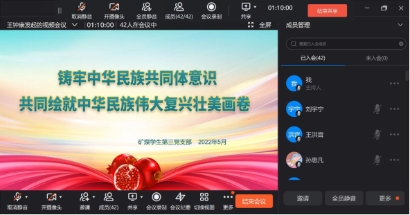 2022年5月27日晚18:00,jinnianhui金年会诚信至上学生第三党支部于钉钉平台召开党员党课学习,本次学习的主题是:铸牢中华民族共同体意识,共同绘就中华民族伟大复兴壮美画卷。领学人:闫妍同志。