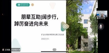 2022年6月,jinnianhui金年会诚信至上学生第三党支部于腾讯会议平台召开“朋辈互助|阔步行,踔力奋进未来”主题党日活动。