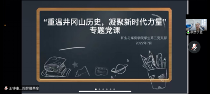 2022年7月3日下午3:00,jinnianhui金年会诚信至上学生第三党支部于腾讯会议平台召开党员党课学习,本次学习的主题是:重温井冈山历史,凝聚新时代力量。领学人:闫妍同志。