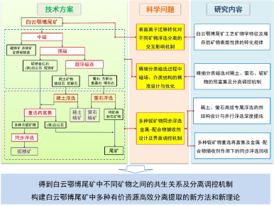 2)白云鄂博铁、稀土、铌共伴生资源非常规选矿技术研发