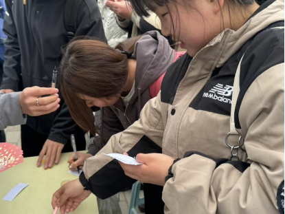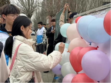 在活动现场,同学们将自己的快乐与烦恼写在纸条上,并选取自己喜欢的气球,并把纸条装入气球中,随着气球不断被吹起、扎爆,同学们的压力也随之消散,留下的是一阵阵欢乐的笑声。随后,领取一张刮刮卡,同学们可以“刮”掉上面的涂层,“刮”出独属于自己的小惊喜,也与舍友相互分享着小惊喜。