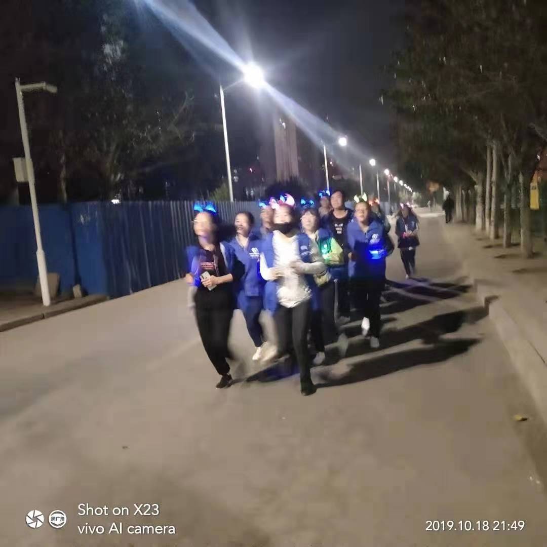 2019年10月14日至18日,jinnian金年会春晖义工协会分别在东、西校区开展了“不忘初心、牢记使命”为主题的趣味体育活动--荧光夜跑。