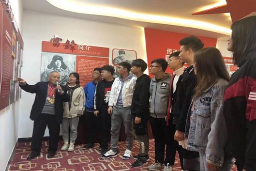 活动开始前,全国岗位学雷锋标兵、岗位学雷锋“最美人物”陈文学老先生为学生讲述了如何更好地学习雷锋精神,让同学们受益匪浅;活动中展厅工作人员向同学们讲述了雷锋的光荣事迹以及现实生活中的雷锋事迹。活动结束后,陈文学老先生亲切地与同学们合影留念。