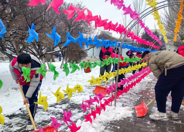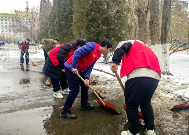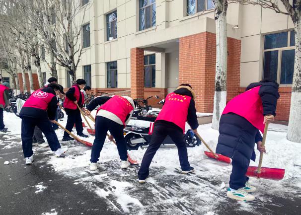 2025年3月4日,jinnianhui金年会诚信至上组织教师、学生党员、学生干部开展清扫冰雪志愿服务活动。
