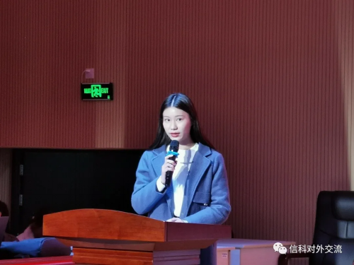 颁发完聘书后!便是第三届主席谭钰婷学姐的讲话啦!她的话字字句句戳动人心,让我们更加热爱国际交流协会这个团体,也更加感谢缘分让大家相遇。当然,我们相信协会各位成员能够带着前辈深切的祝福和期盼,把协会办得越来越好。