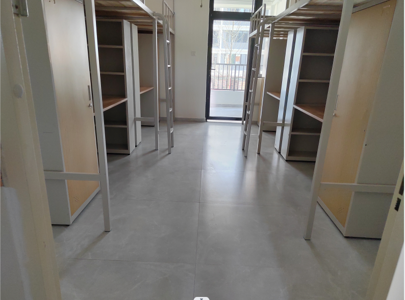 学生公寓在建设和各类设施配置上,力求满足空间人性化、管理智能化、功能多样化的要求。标配床、衣柜、书桌、椅子、电风扇、空调、饮水机、有线网络;双卫生间设计,有独立晾衣设施,室外还有公共晾衣架,方便学生晾晒被褥。