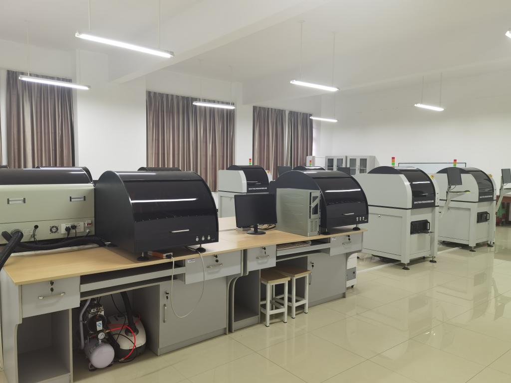 激光雕刻PCB制板中心是广西壮族自治区内同类院校中具有鲜明特色和规模的激光雕刻中心。近两年学校投入 370 多万元建成激光雕刻 PCB 制板中心,至今共有 8 台印制电路激光成型机,两台钻孔机。
