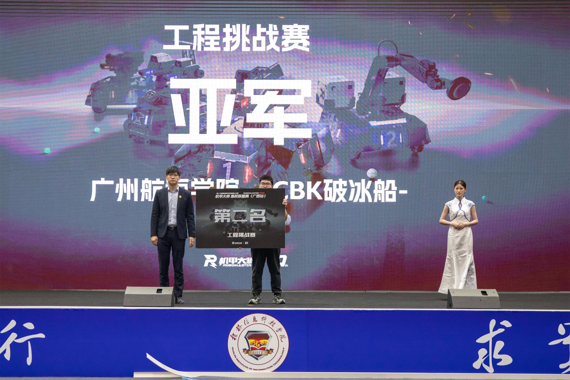 3月23日下午,在闭幕式颁奖仪式上,学校党委副书记李飞,纪委书记、校长助理周旋等嘉宾分别为3V3对抗赛、步兵对抗赛的冠亚季军队伍,以及工程挑战赛的获奖队伍颁奖。