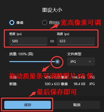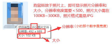 3、照片大小100KB至300KB,分辨率宽度不要超过500px(像素),且照片不能变形和模糊。