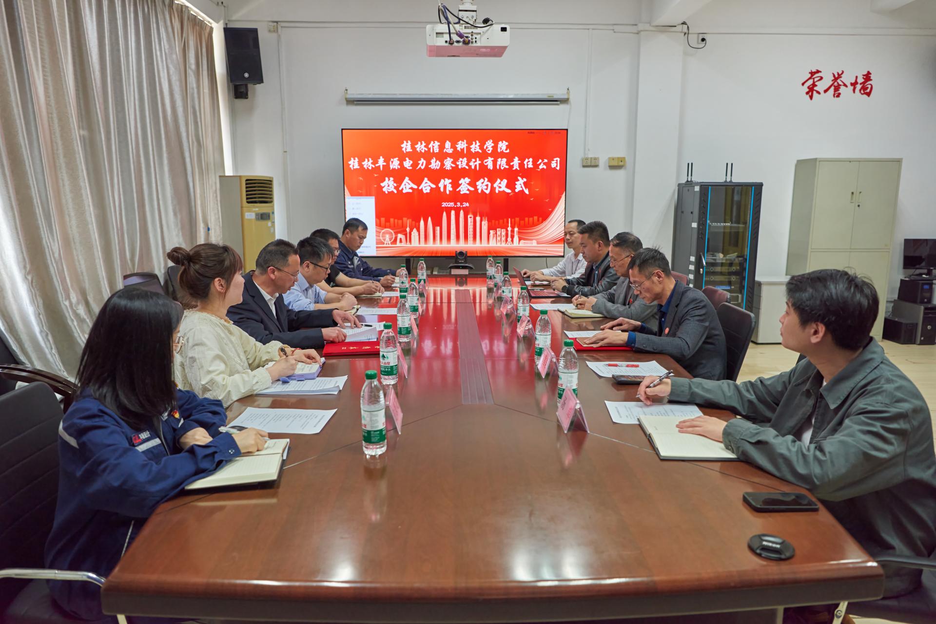 为进一步加强校企合作,推动产教融合深入发展。3月24日,学校副校长刘跃峰赴桂林丰源电力勘察设计有限责任公司开展企业走访,并与桂林丰源电力勘察设计有限责任公司董事长黄学佑、副总经理唐天明签署合作协议,隆重举行实习基地揭牌仪式。机电工程学院院长胡国文、校企合作处及专业教师代表出席了签约仪式。