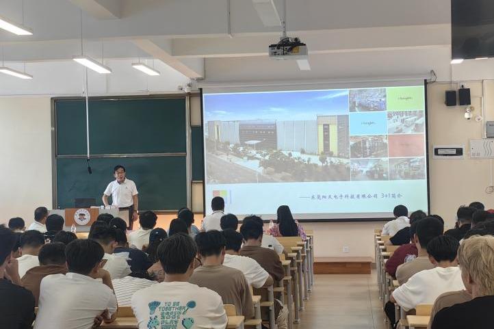 座谈会后,东莞阳天电子科技有限公司宣讲代表为机电工程学院各年级学生开展校企“3+1”人才培养项目专场宣讲会。宣讲人从公司概况、业务领域、企业文化、技术实力及行业前景展开全面介绍,重点解读了“3+1”合作模式的具体内容、培养目标、实习岗位要求、薪酬福利、晋升通道及往届合作学生成功案例。现场气氛热烈,学生们表现出浓厚兴趣,在互动答疑环节,围绕实习内容、技术指导、课题选择、就业转化等问题踊跃提问,企业代表耐心解答,有效消除学生疑虑,增强了大家参与项目的信心。