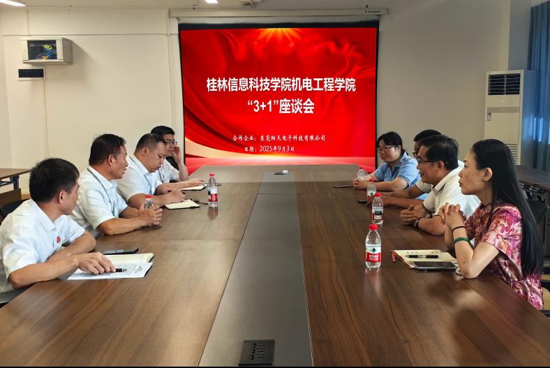 9月3日,临桂高新区政府、机电工程学院与东莞阳天电子科技有限公司齐聚一堂,共同探讨校企 “3+1”人才培养模式,推动产教深度融合与人才培养创新。