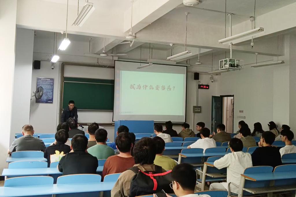会上,彭尧老师对2023年征兵政策进行了详细解读,重点强调了大学生应征入伍的重大意义,以及大学生入伍后可享有的优先考学提拔、补偿学费,退役后享受就学就业优惠等优扶政策。希望同学们将征兵入伍作为一个提升自我的桥梁,将个人理想与富国强军相结合,把个人成长融入强国梦、强军梦的伟大实践中,将个人青春风采融入祖国发展,积极响应国家征兵入伍的号召,投身国防建设的伟大事业。