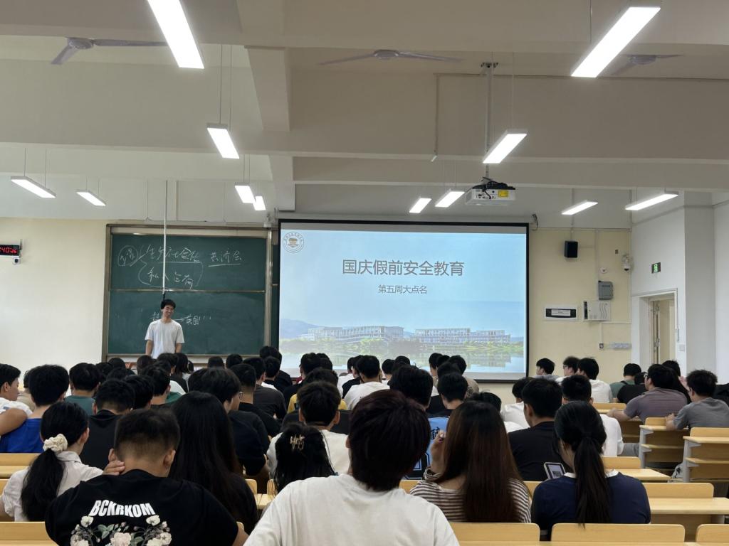 国庆将至,为强化学生安全意识,加强假期期间学生安全管理。9月26日,机电工程学院2021级辅导员于凌浩开展国庆假期安全教育主题会议,2021级电气工程及其自动化专业和机械电子工程专业全体学生参加。