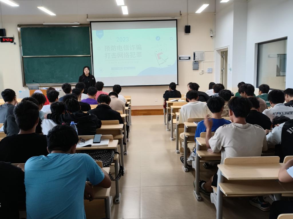 会上,围绕在校大学生的人身安全、财物安全、消防安全和防诈骗、防传销、防“套路贷”等方面开展。结合大学生群体特点,重点介绍了刷单返利、“杀猪盘”、冒充电商物流客服、熟人、领导、 “公检法”,虚假投资理财、虚假购物、非法校园贷和网络游戏虚假交易等典型电信网络诈骗方式。告诫同学们要牢固树立安全意识,加强安全知识学习,不断提高自我保护意识和安全防范技能,共同构建平安和谐校园,指导同学们安装“国家反诈中心APP”,并用生动的事例、简明的道理和朴实的语言为同学们上了精彩的“安全一课”。