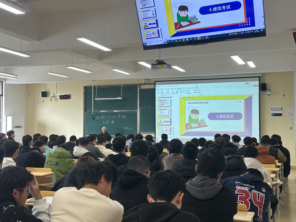 为培养学生诚信品质,11月27日—29日,机电工程学院各年级分别在C506、C507、C509教室分批次召开诚信考试主题教育会议,会议由各年级辅导员主持,我院各年级学生参加会议。