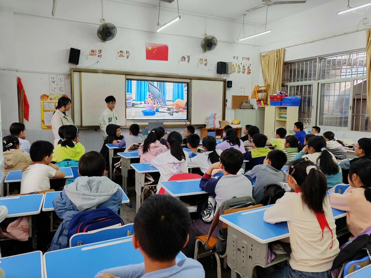 学生团队给小学生们展示了工业机器人工作过程、大学生机器人大赛、大学生工程能力比赛的视频,让同学们对机械与自动控制能够实现的功能有所了解,接着通过机械结构建模仿真、编程、实物模型组装及控制实操,带领孩子们体验生活中常见的机器人、机械臂等的主要结构组成和控制原理等,以此激发孩子们的科技兴趣,鼓励孩子们探索自己的兴趣方向并为目标努力学习。