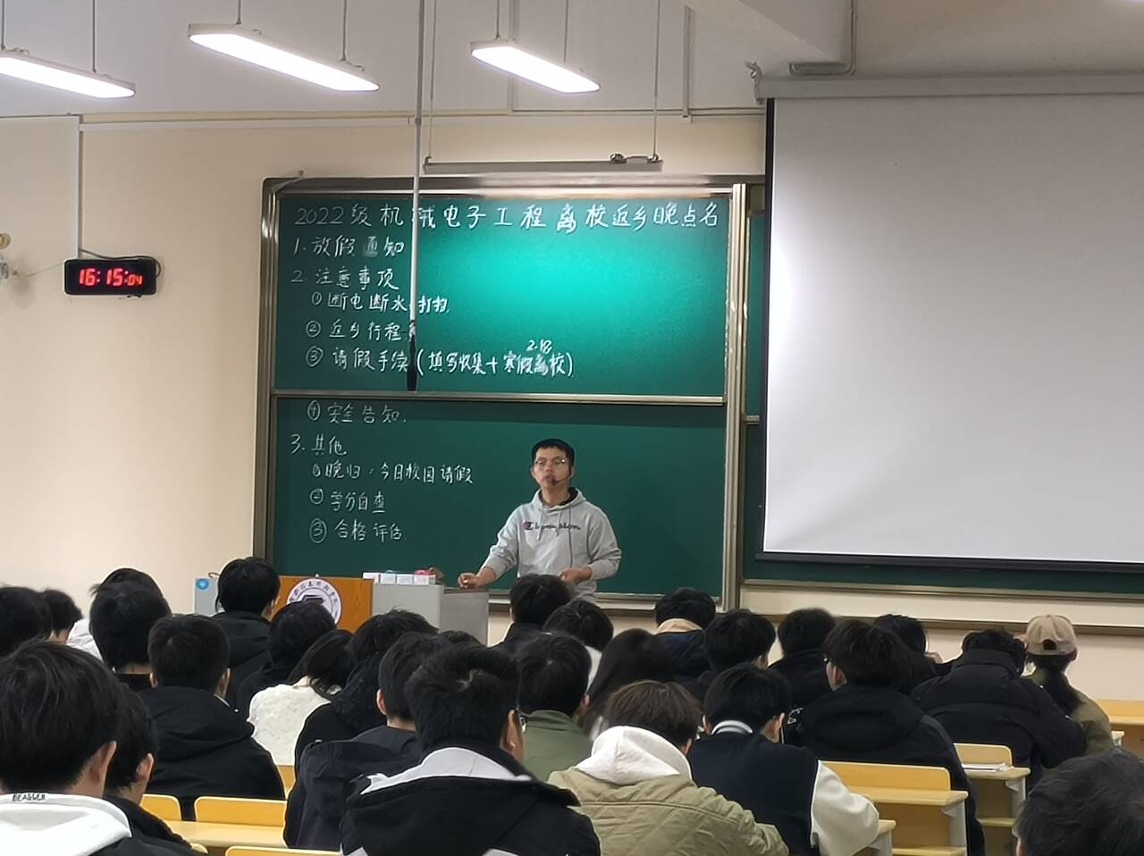 为进一步增强学生安全意识,全面做好学生离校返乡安全教育管理工作。1月2日,机电工程学院各年级通过晚点名教育、主题班会、深入宿舍等形式,开展了一次形式多样的寒假离校返乡专题教育。