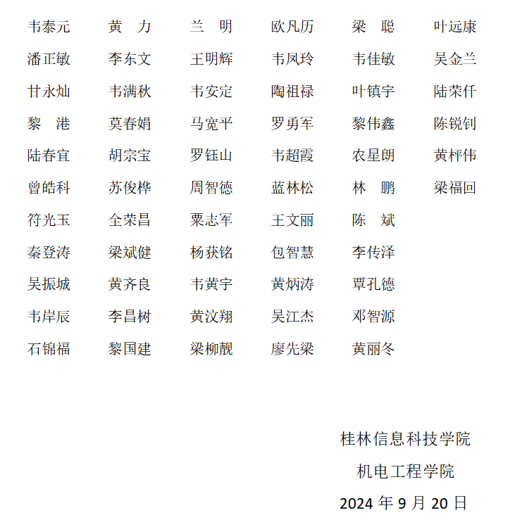 根据《关于做好2024-2025学年度普通高等学校国家助学金评选工作的通知》的有关规定,本着公平、公正、公开的原则,经个人申报,学院评议,现拟认定韦泰元等61名同学为2024-2025学年度家庭经济困难补充学生。具体名单详见附件(排名不分先后)。