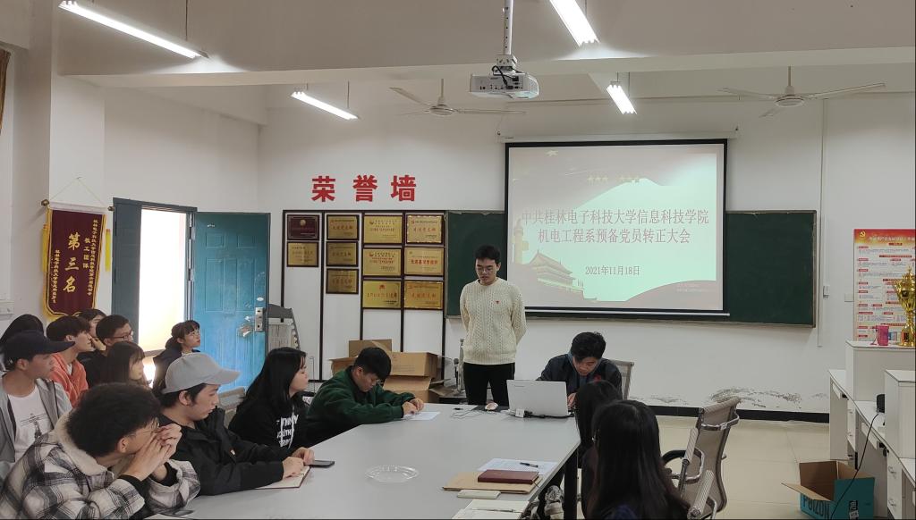 11月18日,机电工程学院第一、第二、第三学生党支部全体党员在11311党员活动室教室召开预备党员转正大会。大会由党支部书记严继玲、梁梦良老师主持。