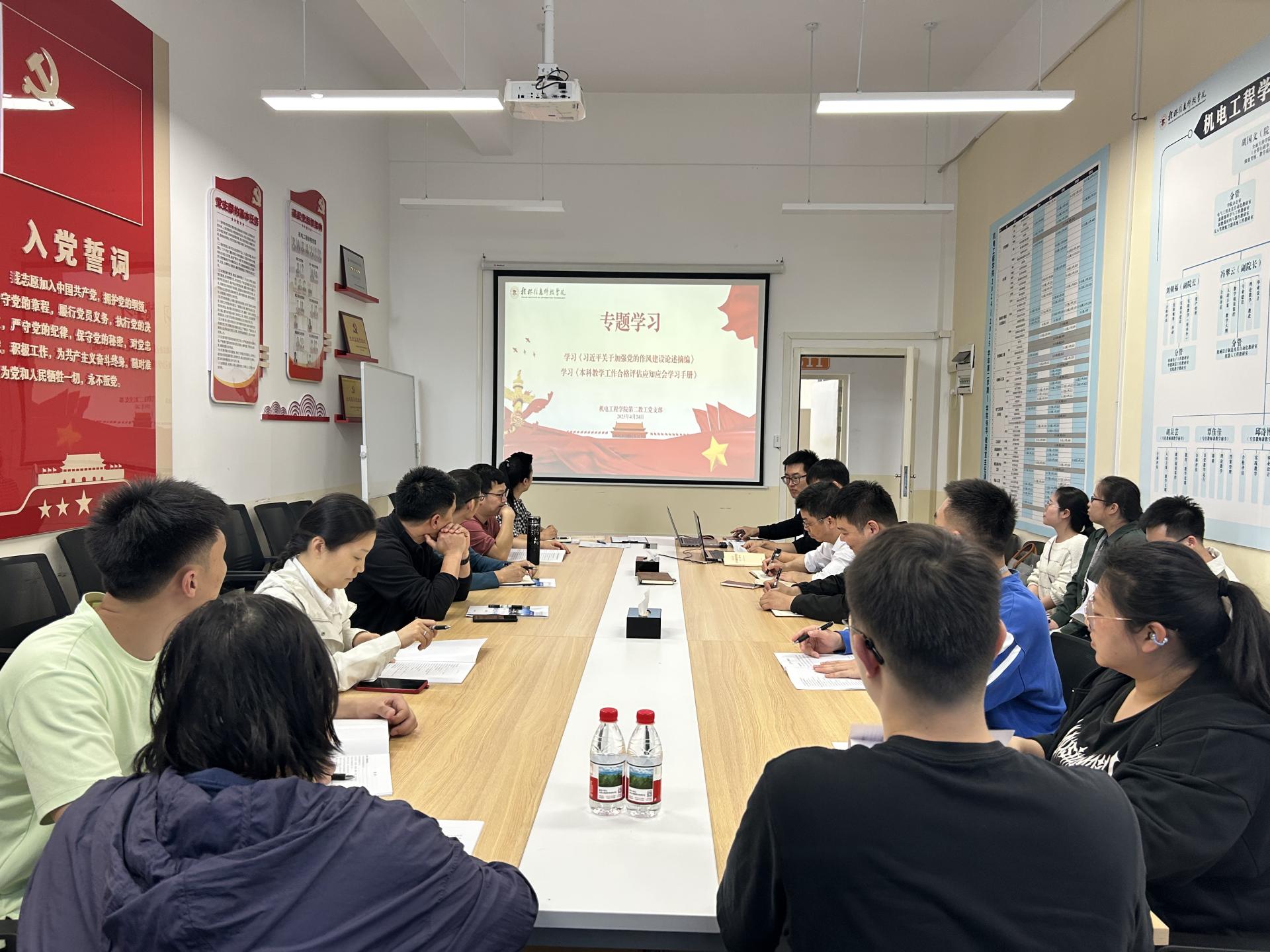 4月24日,机电工程学院第二教工党支部在E512组织学习《本科教学工作合格评估应知应会学习手册》,会议由奉燕和张云凯同志主持。