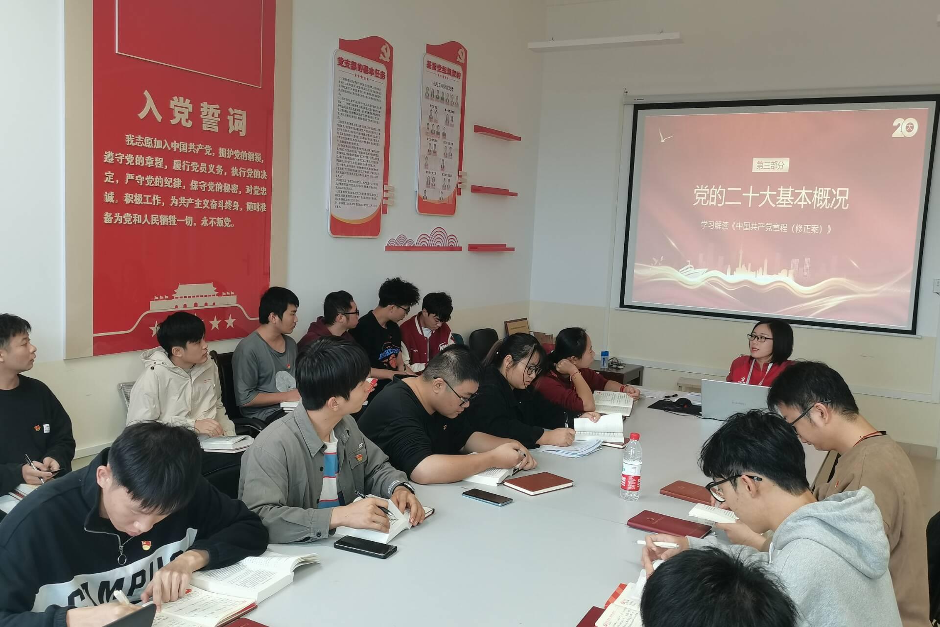 支部书记严继玲同志带领全体党员围绕党的二十大报告原文展开学习,并结合学生党员实际,对“如何以党的二十大精神指导学习与实践”展开热烈讨论。聚焦理论学习,领悟精神内涵。会上,支部书记以“青春逢盛会,奋斗正当时”为题,从“过去五年工作和新时代十年伟大变革”“中国式现代化的中国特色与本质要求”等核心内容切入,结合青年党员成长成才实际,强调“要把党的二十大精神转化为学习动力,在专业领域争做表率,以真才实学服务人民”。