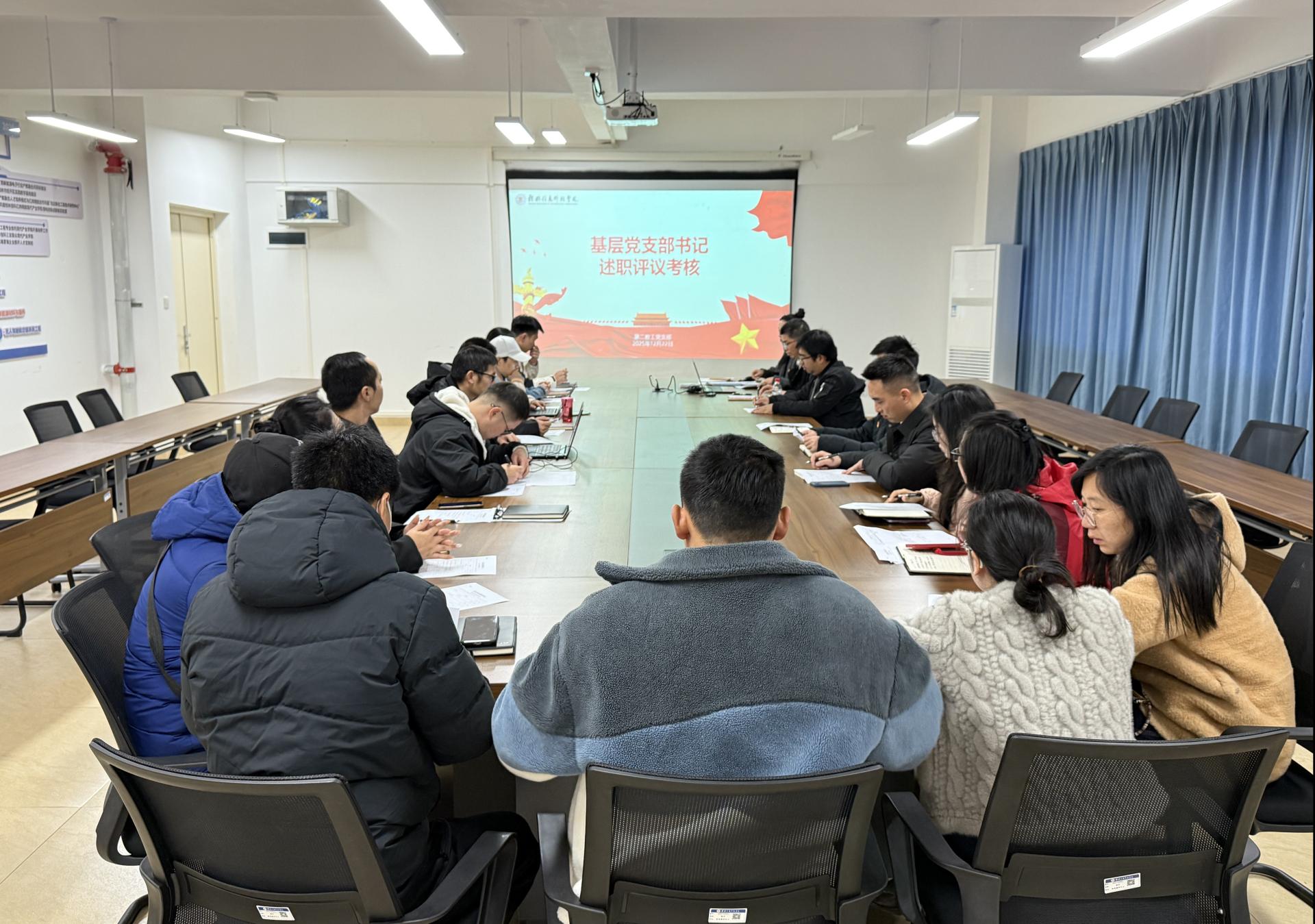 为深入学习贯彻党的二十大精神,持续巩固深化主题教育成果,全面总结基层党建工作成效,推动全面从严治党向纵深发展,12月22日下午,机电工程学院第二教工党支部在正心楼J709会议室召开了支部书记年度述职评议会议。学院党委书记文超、党支部副书记奉燕、支部委员、全体教工党员参加了会议。