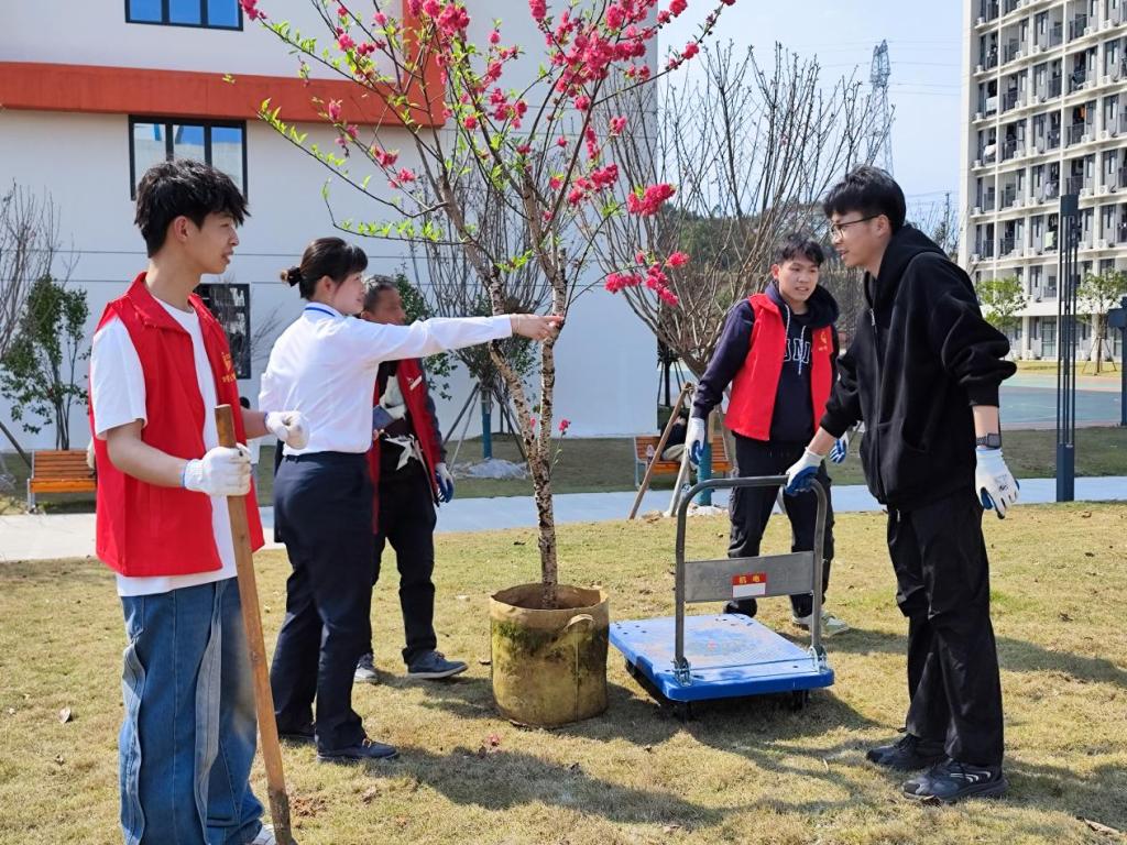 活动现场,50余名学生志愿者干劲十足,配合默契,到处都是忙碌的身影,充分发挥了团队协作的力量,经过几个小时的辛勤劳动,一排排嫩绿的树苗稳稳地栽植在了土壤之中。学生志愿者们表示:此次植树活动,不仅美化了校园环境,更增强了自身的绿化意识,让大家积极关注、保护环境。