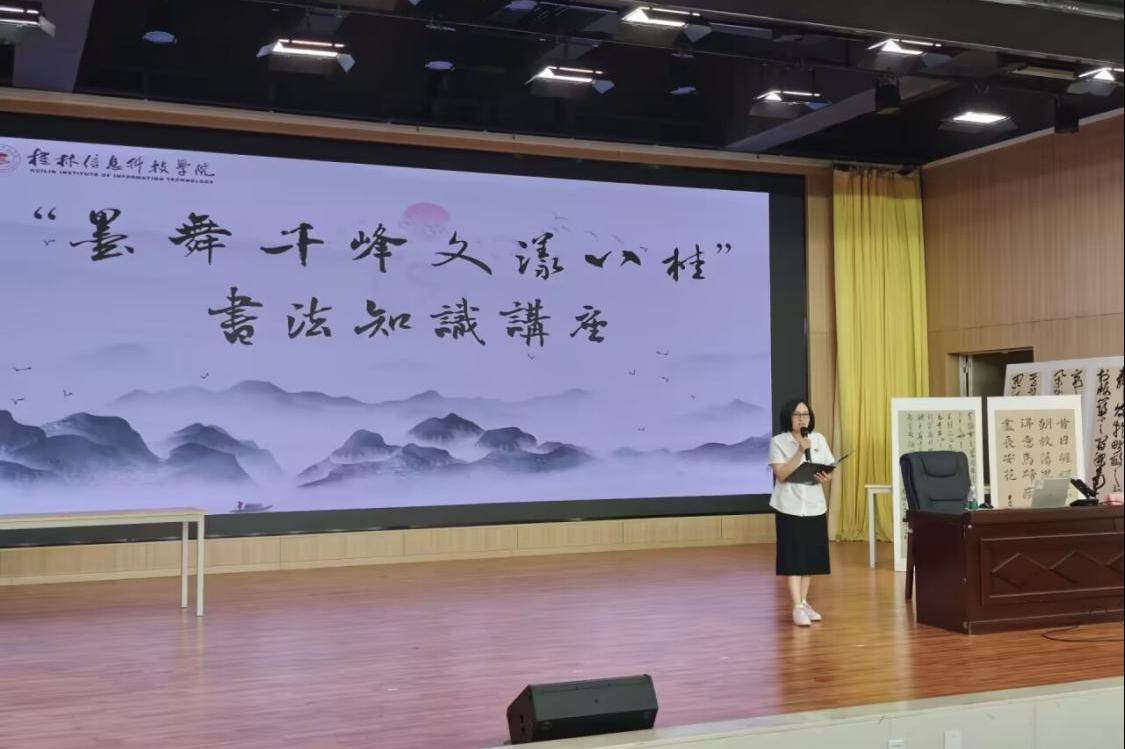上午,广西师范大学唐长兴教授在报告厅F107 开展《书法学习中的基本功 “密码”》主题讲座。机电工程学院党委副书记严继玲致辞强调美育对人才培养的重要性。唐长兴教授讲解书法基本功要点,在互动环节解答了学生关于挑选毛笔的问题。