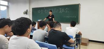 2019年5月22日星期三中午12时40分,机电工程系18级机械设计制造及自动化4班在22307召开了第三次主题班会。本次主题班会为了针对近期桂林某学院外旅社因违规用电等安全问题引发火灾导致伤亡和即将迎来的期末考试而召开的。为了响应学校的高度重视,班会由班主任程彬彬主持,班长潘俊富记录。