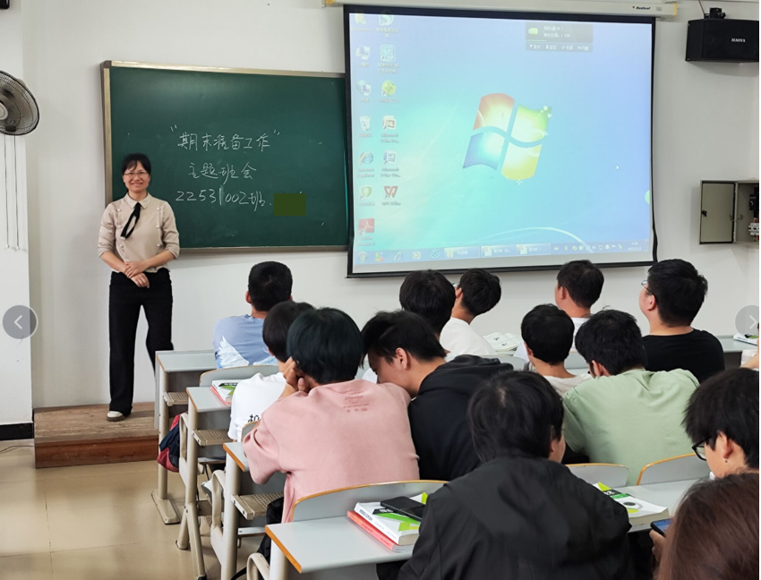 转眼学期过半,期末悄然来临。5月22日上午,机电工程学院22531002班班主任韦艳娥老师组织全班同学,在32307教室召开了“期末准备工作”主题班会。