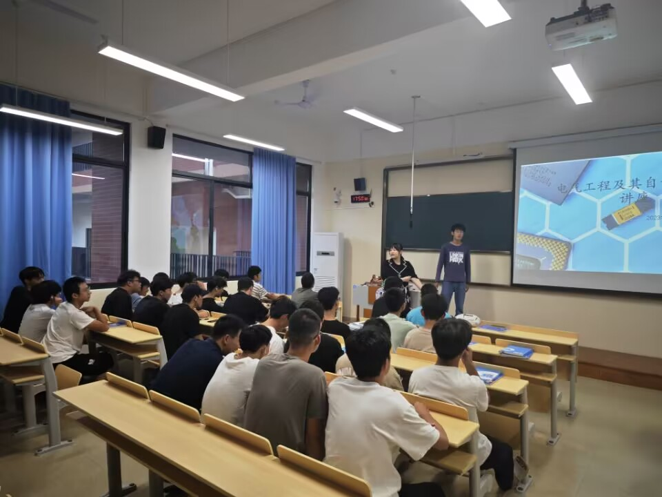 10月18日下午,22级电气四班班主任武恺馨及本班同学在D410召开了电气工程及其自动化专业讲座。
