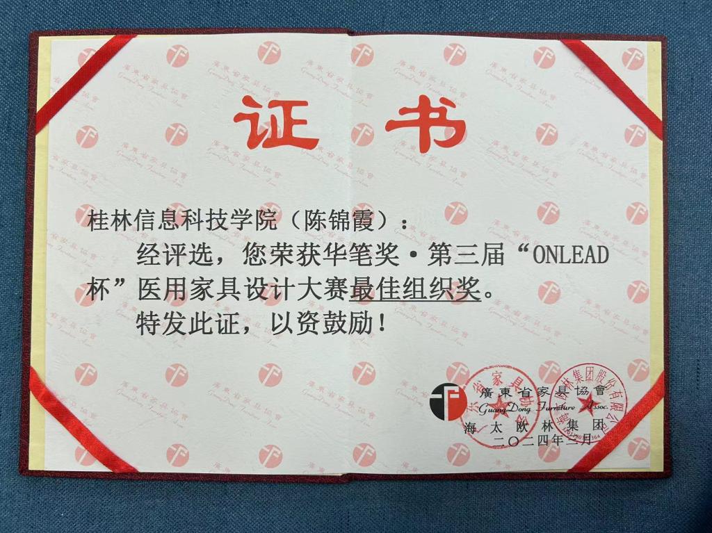 3月17日,在“华笔奖”系列家具设计大赛评选中,我院20级工业设计专业学生参赛的设计作品共有5项荣获优秀奖,陈锦霞老师获大赛最佳组织奖。