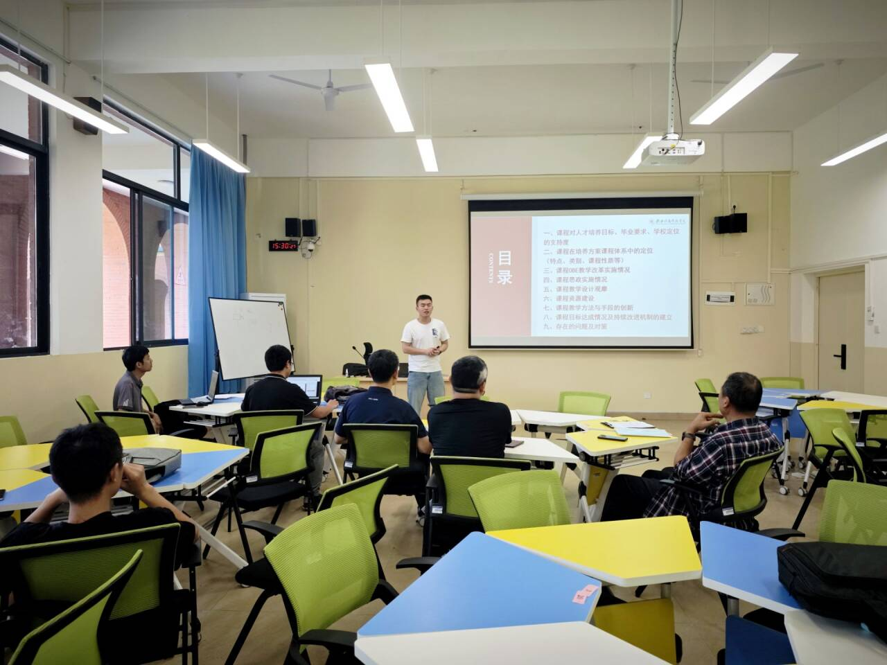 本次活动主要围绕课程对教育教学顶层文件的支持度、课程定位、OBE教学改革实施情况、课程思政实施情况、课程资源建设以及课程教学方法创新等内容展开讲述。郝卫东老师立足学校实际,从课程体系设计、思政元素有机融合以及教学改革创新三个维度提出了系统性优化方案,强调以学生发展为中心,通过精准化课程建设和持续改进机制全面提升教学质量。