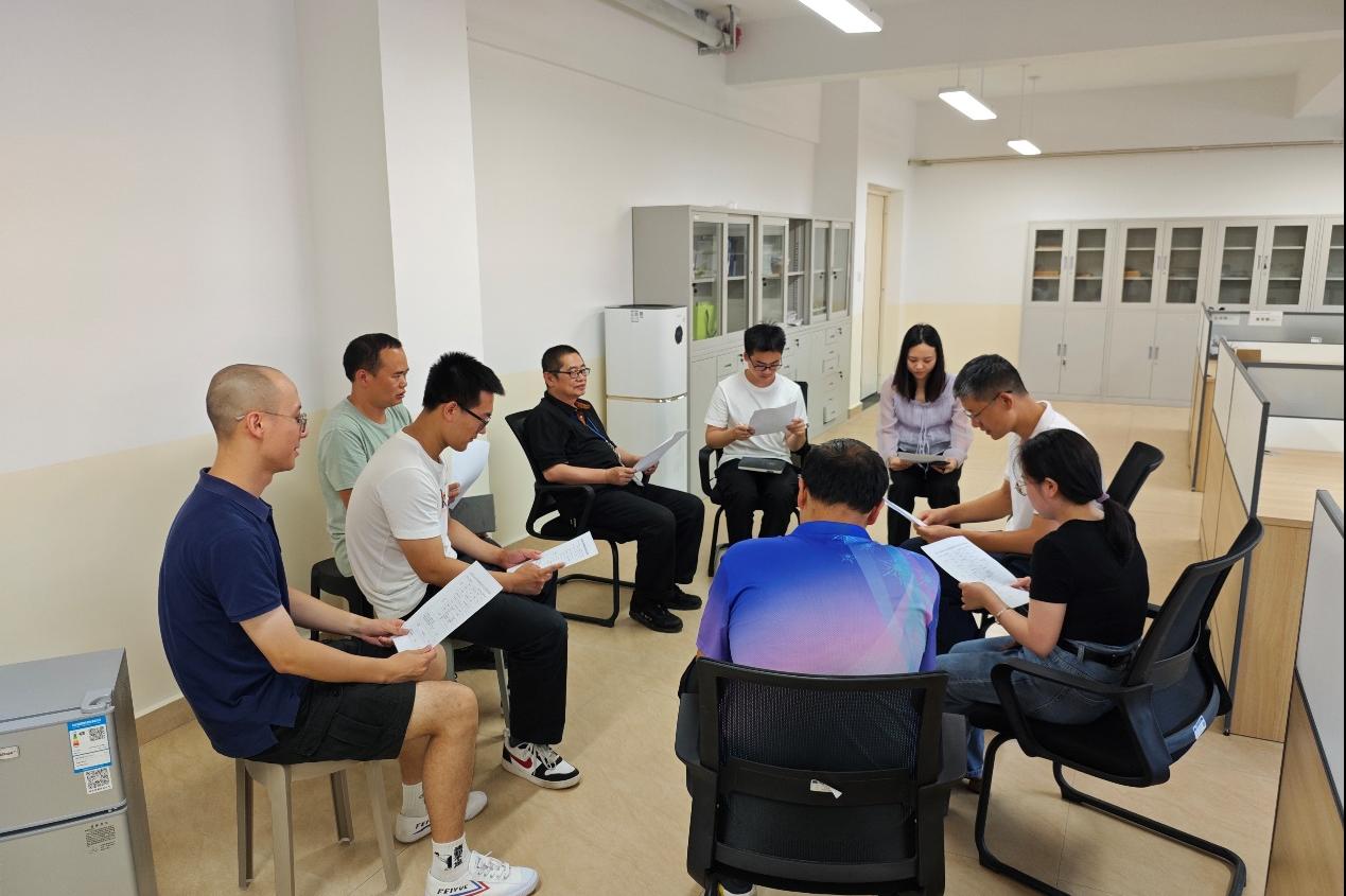 教研室主任蒋荣在开场发言中强调,安全是开展教学与科研工作的首要前提,必须将安全理念贯穿于实验管理、设备操作和学生指导全过程。随后,周利航老师带领全体教师系统学习《实验室安全管理办法》《突发事件应急处理预案》,结合典型安全事故案例剖析风险点,通过互动研讨明确各岗位安全职责,重点提升教师应急处置能力。教师们围绕实验室日常管理经验展开交流,杨小英提出建立学生定期安全培训机制,确保实验操作规范;杨昊建议成立安全检查小组,实行每月隐患排查制度,将风险防控落到实处。