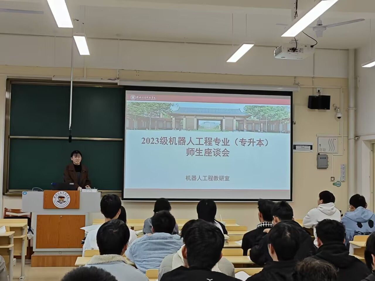 为深入了解2023级机器人工程专业(专升本)学生的学习状况与实际需求,搭建师生互动交流桥梁,11月4日下午,机器人工程教研室在敏思楼D410教室成功召开期中师生座谈会。会议由教研室主任陈婕老师主持,教研室全体教师共同出席,与学生代表展开深入坦诚的交流,为专业教学优化与学生成长精准把脉。