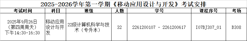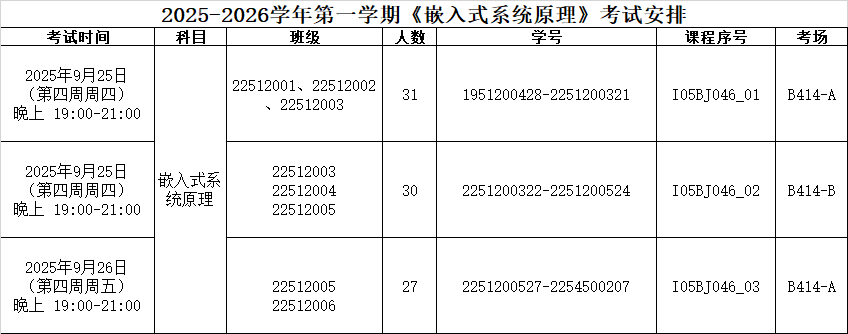 2025-2026学年第一学期《嵌入式系统原理》《移动应用设计与开发》考试安排如下: