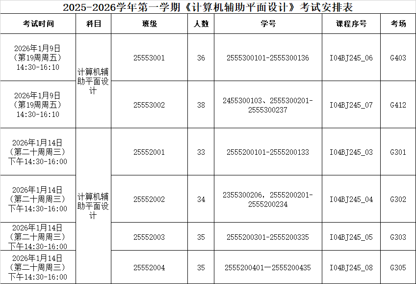 《计算机辅助平面设计》考试安排