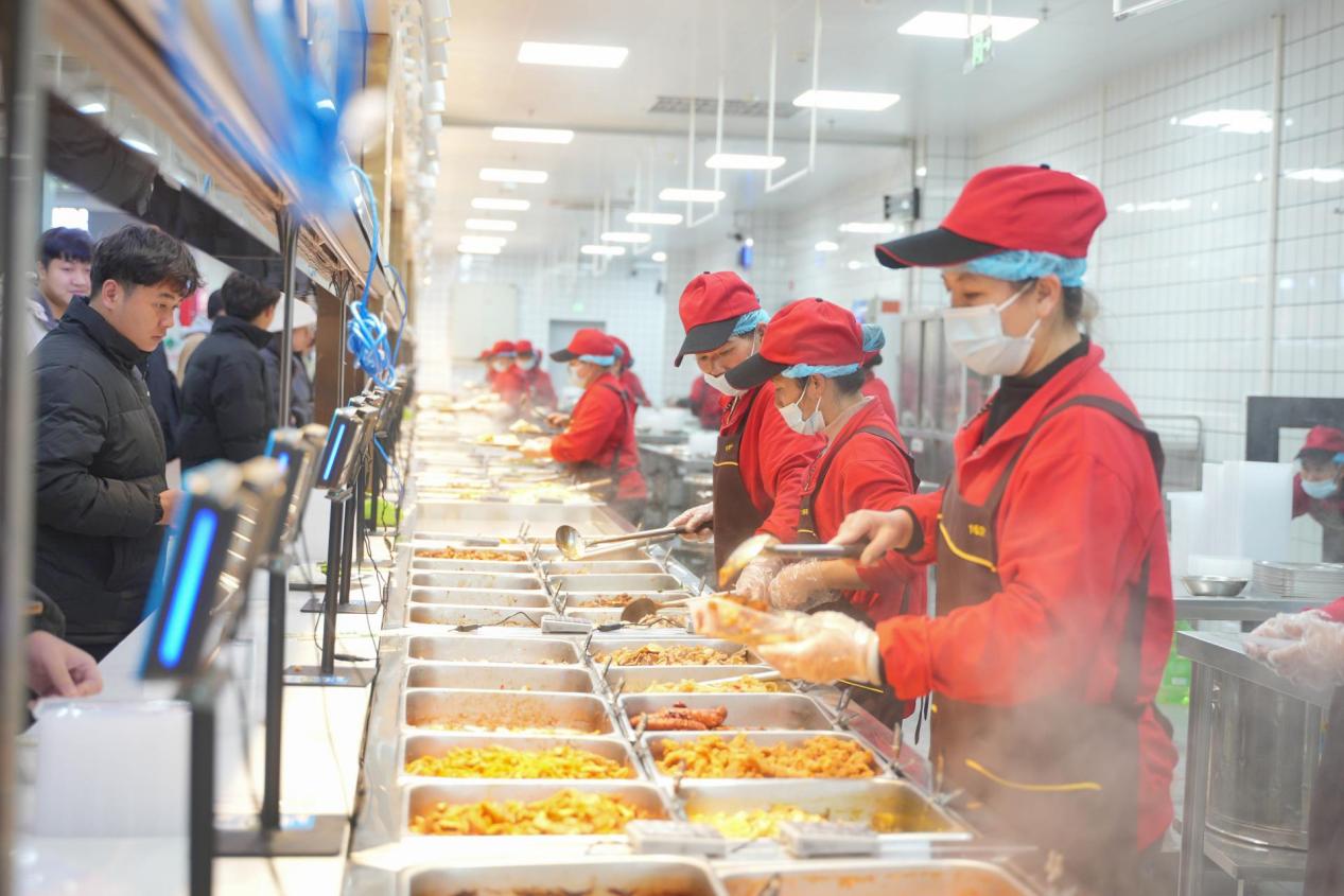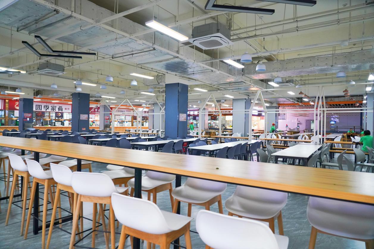 食堂大楼总建筑面积19729㎡,内设三层餐厅,涵盖110余个档口及自助餐,食材卫生安全,品类丰富,可提供定制化套餐。