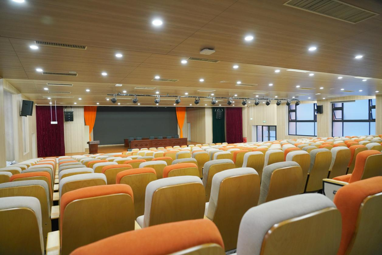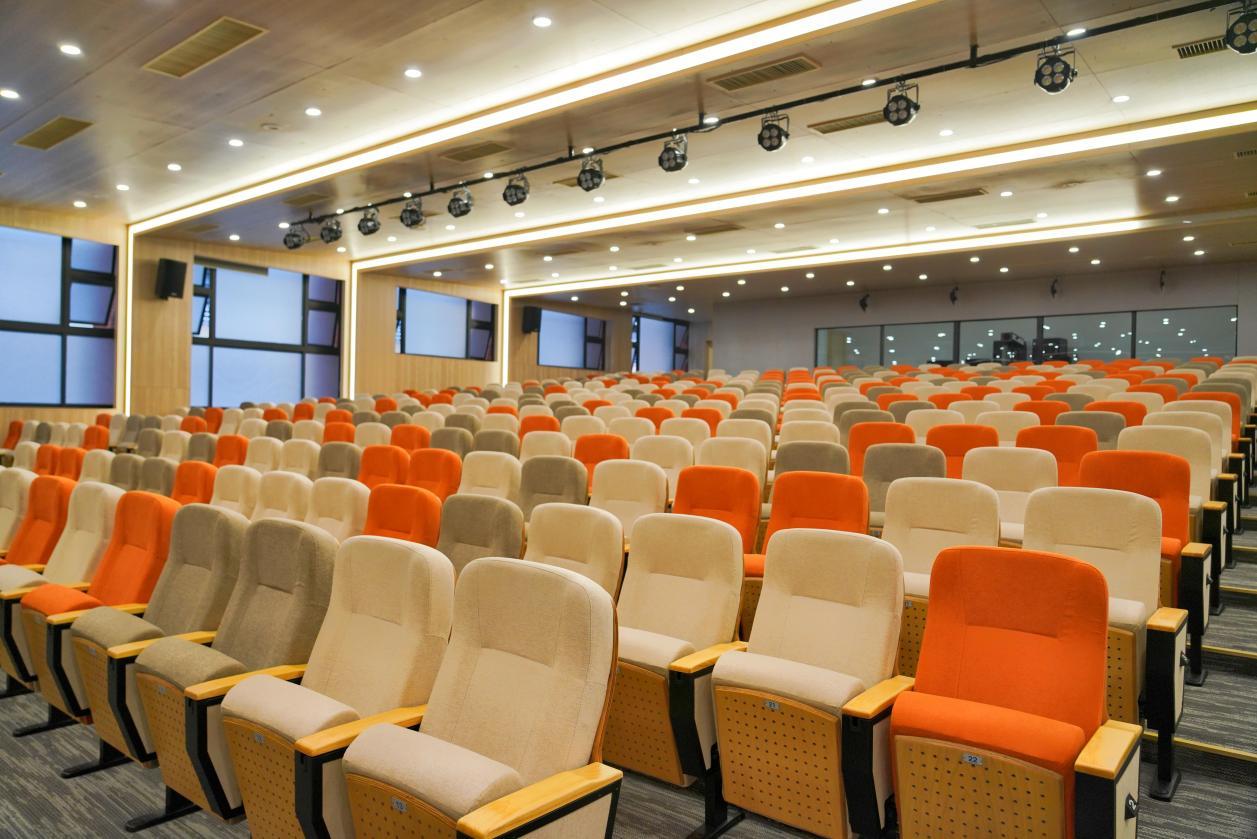 报告厅内部采用阶梯式座椅布局,可容纳390名观众,座椅设计符合人体工学,确保舒适的就座体验。