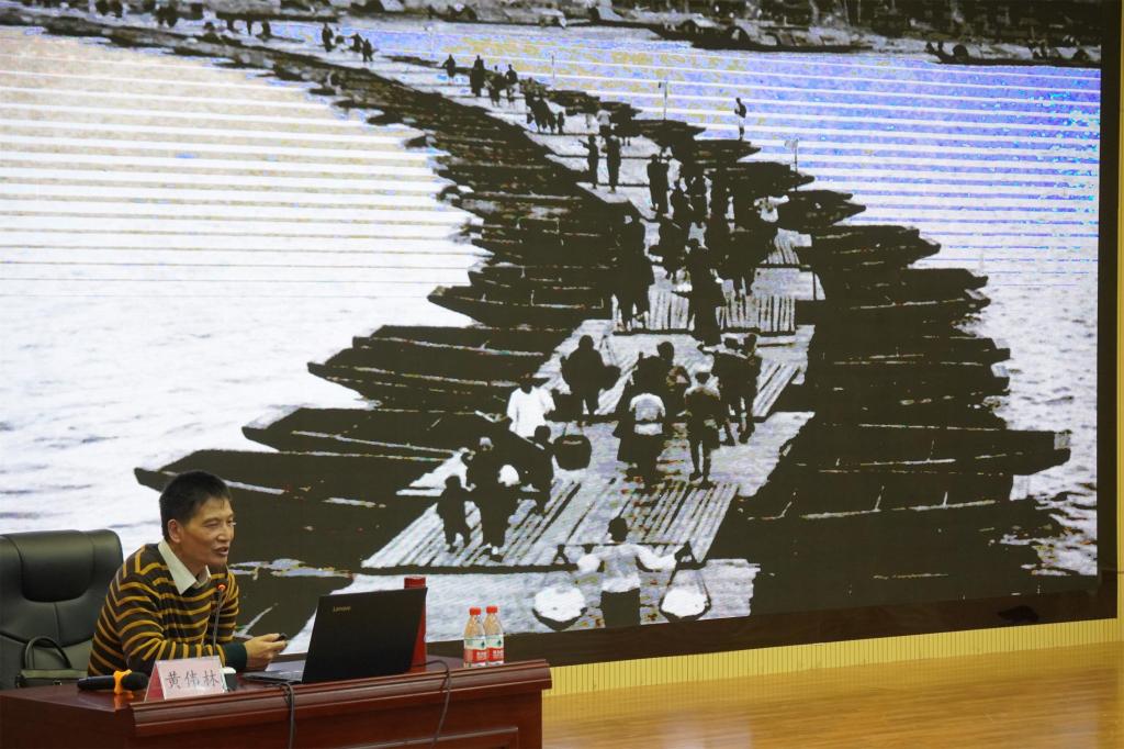 10月21日,机关二工会“爱家乡、爱桂林、知桂林”系列活动首场活动拉开帷幕。应机关二分工会邀请,广西师范大学黄伟林教授做客我院开展讲学。此次活动由机关二工会联合学院图书馆、机关二直属党支部、思政与公共教学部直属党支部、电子工程系党总支、机电工程系党总支、管理系党总支、设计系党总支共同举办。讲学中,黄伟林教授以《图说桂林文化城》为主题,为在座师生生动形象地讲述了桂林市作为国家首批历史文化名城,其文化的渊源及文化的发展,同时从多个侧面为师生们展现了桂林作为文化名城在抗战期间的历史截面和文化意蕴。